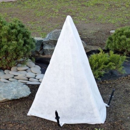 Теплолюбивые молодые растения (например, рододендроны) осенью в год посадки нужно обязательно укрыть лапником или другим материалом. Иначе первые же заморозки погубят саженцы.