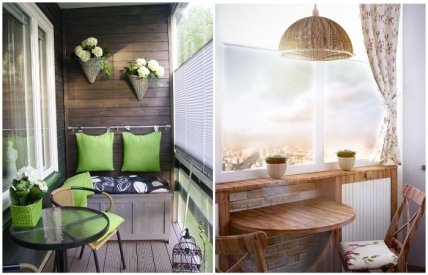 Следует обратить внимание на то, что мебель, подобранная для балкона, обязательно должна гармонировать с внутренней отделкой. То есть, пластиковые варианты однозначно не подходят. Если вы планируете приобрести встроенную мебель, то ее нужно подбирать в цвет стен, чтобы она казалась логическим продолжением помещения.