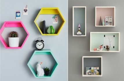 Цветные оригинальные полки станут отличной системой хранения в комнате.