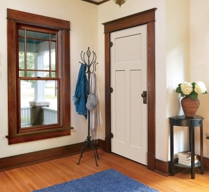 Дверные наличники цвета дерева добавляют уюта в интерьер.