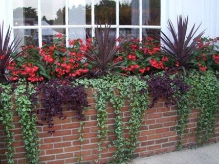 Используйте кирпич для создания эффектных цветников. Для начала выложите каркас из двух невысоких стен. Пространство между ними заполните почвой. В центр клумбы посадите низкорослые цветущие растения, а по краям — многолетники с длинными свисающими побегами — например, Дихондру или Вербейник монетчатый.