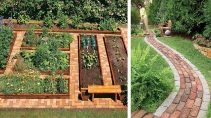 Используйте простые бордюры из кирпича для зонирования пространства на участке.