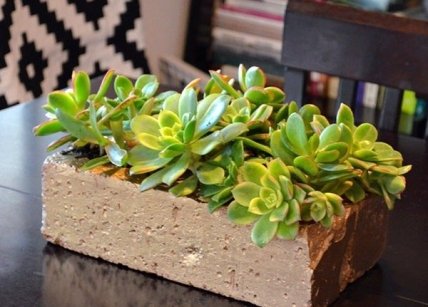 Обычный облицовочный кирпич — оригинальная замена цветочному горшку. Поместите в отверстия немного почвы и посадите в нее растения, которым не требуется много места — например, суккуленты.