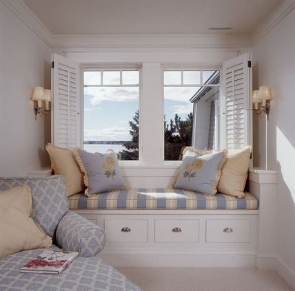 Самый удачный вариант – деревянное основание подоконника, так как оно прочное и надежное. Сделать его мягким и комфортным поможет матрас, изготовленный с учетом размера подоконника, а также небольшие декоративные подушки. Если не хотите слишком заморачиваться, то вместо матраса постелите плед и возьмите еще один, чтобы укрываться. Как видите, немного усилий, и вы уже стали обладателем отличного места для релакса, где можно почитать любимую книгу и выпить чашку горячего кофе.