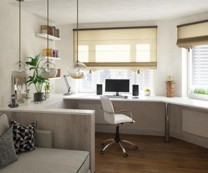 Если в квартире не хватает места для кабинета или хотя бы мини-офиса, то используйте для этих целей подоконник. На нем можно будет без труда разместить ноутбук, необходимую канцелярию и несколько книг. Также можно будет добавить несколько функциональных полок под подоконником или сбоку от окна, которые послужат удобным местом для хранения нужных вещей. Таким образом, вы не только станете обладателем комфортного места для работы с естественным освещением, но и сможете избавиться от громоздкого стола, который занимал большую площадь в комнате. Кстати, такой вариант подойдет не только для взрослого человека, но и для школьника.