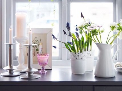 Подоконник вполне может стать не столько функциональным, сколько декоративным элементом, который украсит интерьер квартиры. Все, что вам нужно для этого, украсить место под окном при помощи свечей, фотографий, красивых самодельных баночек для канцелярии. Также можно красиво выставить книги, которые вы планируете прочитать в ближайшее время, чтобы они всегда были на виду и не позволили вам игнорировать чтение.