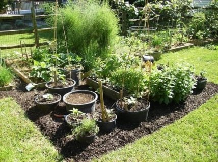 Горшки большого диаметра подойдут даже для выращивания крупных растений. Но просто расставлять их в разных местах дачи — надоевшее решение. Более оригинально будет выглядеть участок разрыхленной почвы, на которой стоят горшки с растениями. Чтобы такая композиция выглядела гармоничной, выбирайте цвет горшков, максимально приближенный к цвету почвы.