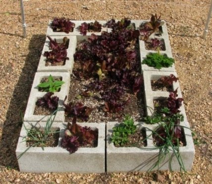 Строительные блоки, изготовленные, к примеру, из пенобетона, станут отличной основой для создания грядки.Необходимо только заполнить свободное пространство почвой и высадить в него растения.