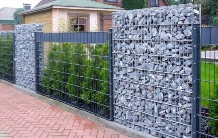 Последние годы в ландшафтном дизайне большую популярность приобретают габионы. Они представляют собой короба из металлической сетки, которые заполняют камнями. Область применения габионов очень широка – их используют для зонирования участка, обустройства подпорных стенок и различных дачных сооружений, а также для строительства заборов.