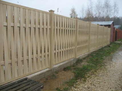 Забор из штакетника уже не выглядит банальным благодаря расположению планок «веером» и «елочкой».
