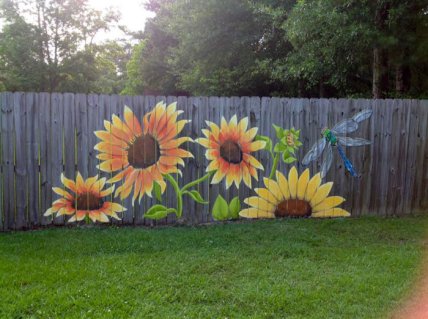 Уже имеющийся дощатый забор можно преобразить, украсив его художественной росписью. Нарисовать можно что угодно: от цветов и бабочек до поп-арта, главное, чтобы изображение вписывалось в общую эстетику двора.