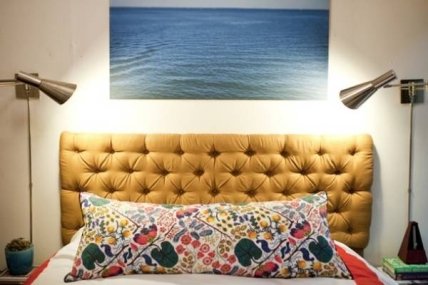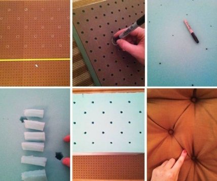 Существуют сотни креативных способов украсить спальню с эффектным изголовьем. Здесь же мы приведем вам полезную фото инструкцию по созданию шикарного изголовья в классическом стиле. Перфорированная доска, кусок пенополиуретана, ткань, нитки и пуговицы!