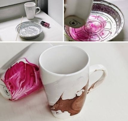 Эффект мрамора сегодня чрезвычайно модный. Но кто бы мог подумать, что его можно достигнуть с помощью обычных лаков для ногтей? И применять не только в маникюре, но и для создания красивого декора для дома своими руками.