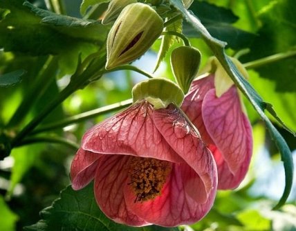 Еще одно неприхотливое, но очень эффектное комнатное растение. Его крупные цветки имеют колокольчатую форму и бывают различной окраски: белые, розовые, желтые, красные, а листья – похожи на кленовые. Отсюда и такое название. Абутилон переносит сухость и жару в квартире, а горшочек с этим растением можно поставить на подоконник или на некотором расстоянии от него. Поливать их нужно мало – иначе не будут цвести. Растение не требует особого подкармливания: всего-то нужно один раз в три недели обогатить почву жидким удобрением для комнатных растений. Абутилон не только создает приятную атмосферу в доме, но и отлично увлажняет воздух.
