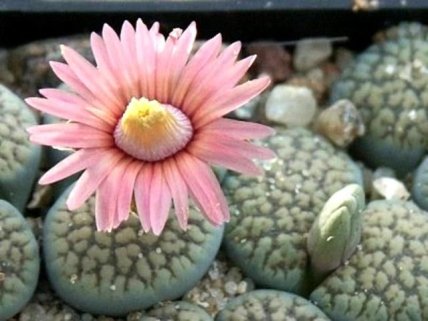 Это весьма необычные комнатные растения. По внешнему виду они напоминают гальку, и привыкли к спартанским условиям содержания: растут на камнях, а зимой вообще не требуют полива. Очень разные по форме и окраске эти «живые камни» станут отличным украшением вашей комнаты, а весной порадуют необычными цветками.