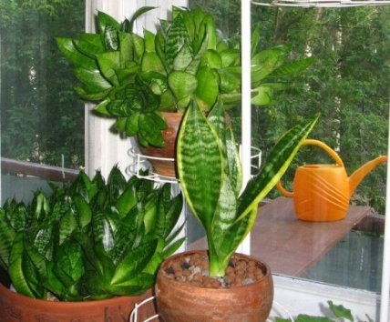 Если вам никак не удается вырастить орхидею или апельсиновое дерево, а все ваши попытки заканчиваются полным провалом – не унывайте! Начните с сансевиерии. Это очень красивое комнатное растение семейства Агавовых вполне можно отнести к числу «неистребляемых». Оно переносит тень и солнце, сухой воздух, влажность и прохладу. А еще защищает от скопления вредных веществ, выделяемых линолеумом и синтетикой. На ярком солнце сансевиерия способна даже зацвести, но плохо переносит переувлажнение почвы и низкую температуру. Пересаживать ее не обязательно, но когда она пустит слишком много корней, горшок сам может треснуть. Лучше приобрести сразу два цветка, ведь само по себе это очень красивое и несомненно полезное растение.