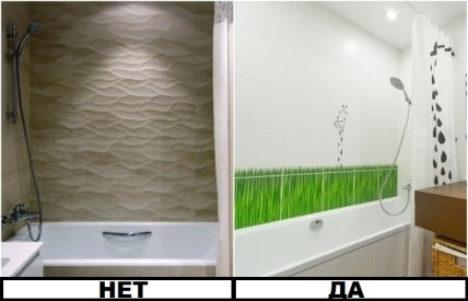 Рельефная плитка для ванной комнаты - не самое лучшее решение. Да, она прочная, за счет фактуры делает интерьер стильным и дорогим, может монтироваться на неровные стены. Но в плане ухода этот материал вас разочарует. На нем остаются налеты, разводы, следы от воды, которые отмыть гораздо сложнее, чем с обычного плоского покрытия. На плитке скапливается много пыли, которую устранить не менее тяжело, чем прочие загрязнения. Также стоит упомянуть, что из-за высокой прочности, к стене будет нелегко вплотную прикрепить крючки, полотенцесушитель, настенную раковину, крепления душевой кабины. Из-за рельефности плитки между стеной и устанавливаемым предметом может остаться зазор.