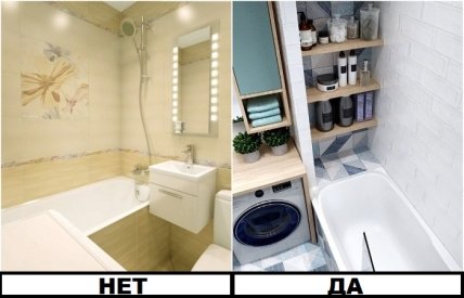 Наверняка вы замечали, что на большинстве фотографий интерьеров, которые можно встретить в интернете, практически нет систем хранения. Дизайнеры ограничиваются несколькими полками небольших размеров, но на этом все. Если вы захотите повторить такой дизайн в реальной жизни, то постоянный беспорядок в санузле вам гарантирован: максимум, что могут вместить крохотные полки - несколько принадлежностей для купания, например, пузырьки с шампунем или гелем для душа. В результате, все предметы, необходимые для ежедневного ухода, расставляются на бортиках ванной, стиральной машине, новых полках, которые не подходят по стилю к интерьеру санузла. А ведь было бы гораздо проще, если бы вы еще на этапе ремонта продумали эффективное хранение: предусмотрели тумбу под раковиной, узкий шкаф у входа, полку над дверью, экран с нишей под ванной. Санузел должен быть функциональным, иначе он вызывает лишь сожаления.