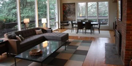 Выбирая покрытия для комбинирования, обязательно учитывайте их толщину и то, как будут выглядеть стыки. В местах сопряжения разных напольных покрытий обязательно используйте специальные порожки.