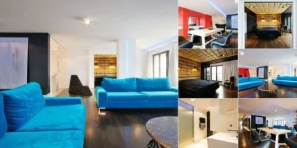 Квартира, о которой идет речь в этой статье, находиться недалеко от центра польской столицы, города Варшава. Она очень просторная и имеет нестандартную планировку. Как видите, польские дизайнеры решили сделать интерьер современной квартиры не просто стильным, а ярким и запоминающимся. Для того, чтоб осветить обширное пространство комнат, они решили использовать пластиковые окна в квартире таким образом, что практически каждое окно одновременно выполняет роль дверей. Через такие окна внутрь попадает достаточное количество солнечного света, который заставляет играть яркие краски интерьера.