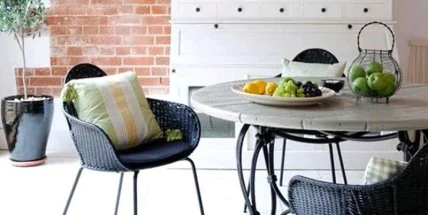 Для тех, кто не любит спешить и тратит много времени на утреннее кофе, мы предлагаем современные вариации деревенского стиля. Это может быть большой круглый стол и темная плетеная мебель, которые будут прекрасно смотреться на фоне кирпичной стены. В более классическом интерьере можно использовать элегантные стол и стулья, выполненные в традиционных цветах. Данное решение сделает обеденную зону идеальным местом для отдыха.