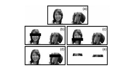 Участники исследования должны были выбрать карту испытаний, в которой, по его мнению, присутствовали реальные пары. Испытуемые получали варианты карт испытаний с одной из пяти «маскировок». Черными прямоугольниками могли быть закрыты глаза людей, глаза собак, рты людей. В четвертом варианте прямоугольники отсутствовали, а в пятом от изображения оставляли только глаза собак.