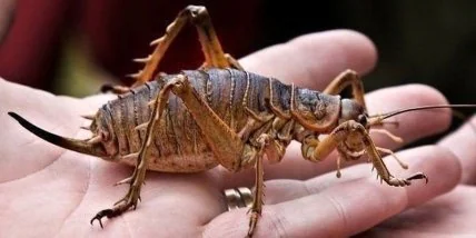 Кузнечик уэта весит больше, чем воробей и спокойно охотится на жаб.