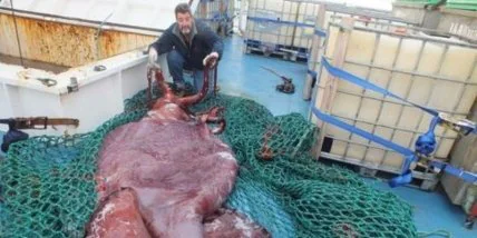 Капитан рыболовного судна выловил беременного кальмара весом 350 кг.