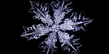 Кристаллы льда в снежинках обязаны своей шестикратной вращательной симметрией водородным связям в молекулах воды. Когда вода замерзает, молекулы воды, связанные с другими молекулами воды, кристаллизуются в гексагональную структуру, в которой каждая точка на шестиграннике представляет собой атом кислорода и каждая сторона шестиугольника является водородом, связанным с атомом кислорода. Поскольку замораживание продолжается, все больше молекул воды добавляются в эту микроскопическую шестигранную структуру, заставляя ее увеличиваться в размере в шестистороннюю макроскопическую структуру, которую мы распознаем как снежинку.
