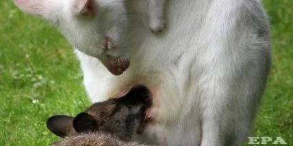 Однако главная новость не в том, что Альберта принесла потомство, а в том, что сама она - белоснежного цвета. Между тем из 10 тыс кенгурят лишь один рождается альбиносом. Таковой оказалась Альбина, появившаяся на свет год назад в Парке птиц Марлов. А вот ее первенец имеет коричневый окрас.