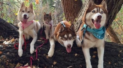 Сила любви: как котенок выжил благодаря заботливой хаски (Видео)