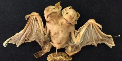 За исключением двух голов, двух сердец и рудиментарной третьей руки, растущей между ними, эта летучая мышь в целом мало отличалась по облику от ее "одноголовых" кузенов. Судя по тому, что эта летучая мышь была найдена вместе с плацентой, она, скорее всего, умерла во время рождения или погибла после выкидыша у ее матери. Изучение этих останков, как надеются ученые, поможет понять, что приводит к появлению аналогичных проблем развития и у человеческих детей.