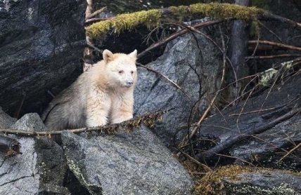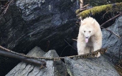 Примерно 10 % популяции кермодского медведя имеют белый или кремовый цвет шерсти. Светлый окрас служит им своеобразным камуфляжем при ловле лосося. По оценкам экспертов, всего в мире не более 500 особей этого вида с белой шерстью. Взрослый самец достигает длины 1,8 м и весит 220 кг.