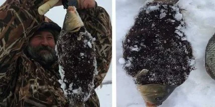 Андрей сразу же выложил улов в сеть. По словам рыбака, сперва на крючок попадались обычные карасики размером с ладонь, но затем, ближе к 11:00, ему удалось вытащить мутанта.
