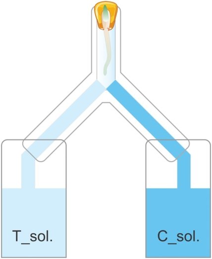 Растение словно "почувствовало" присутствие соседей и направило множество ресурсов на то, чтобы победить их в конкуренции за свет. Если же росток имел доступ к двум растворам одновременно (одному, оставшемуся после "тронутого" растения, и другому - от "нетронутого"), он, очевидно, различал их, и корень активнее тянулся ко второму.