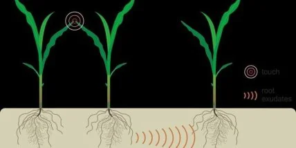 Биологи экспериментировали с молодыми ростками обыкновенной кукурузы, которые выращивались в гидропонных условиях, без почвы - на водном растворе, содержащем все необходимые минеральные вещества. Эти ростки чувствительны к прикосновениям: механическая стимуляция заставляла их выделять в воду сигнальные вещества. И если следующее растение культивировалось на том же самом растворе, то оно отращивало больше листьев и меньше корней.