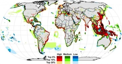 На суше районы высокого риска встречаются на всех континентах, но особенно сконцентрированы в Азии, Северной и Южной Америке. Кроме того, районы наивысшего риска находятся в азиатских морях. Так называемые горячие точки покрывают 4,3 процента суши и 6,1 процента водной поверхности. Доктор Энрико Ди Минин (Enrico Di Minin), научный сотрудник Университета Хельсинки и ведущий автор исследования, подчеркнул, что этим нестабильным центрам необходимо как можно скорее принять соответствующие меры для обеспечения должного поведения человека.