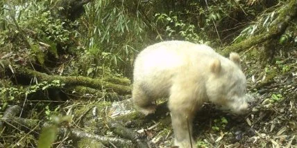 Редкую белую большую панду зафиксировали камеры в Китае.