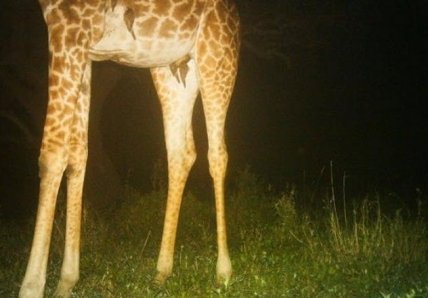 Однажды ночью жираф привел в действие одну из ловушек, которая сделала серию снимков. Они показали, что в подмышках животного располагались группы спящих скворцов. Раньше никто не думал, что птицы иногда предпочитают ночевать там, где они находят еду. Хотя это было удивительно, было нетрудно понять, почему дятлы это делают. Помимо того, что они оставались рядом со своим кормящим хозяином, подмышками у жирафа было также тепло и безопасно.