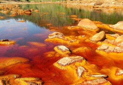 Рио – река, Тинто – красная. Бразилию в свое время так назвали португальские колонизаторы по местному именованию красного дерева. Испанская провинция Андалусия до сих пор находится в Европе. Беда в том, что более трех тысяч лет там добывают золото, серебро, медь, никель, молибден… В средние века добывали еще и ртуть. Результат загрязнения озера, в которое впадают многочисленные стоки, предсказуем и виден на иллюстрации. Как ни странно, там живут бактерии-экстремалы, которым не нужен воздух (они анаэробные), но очень нужен азот. Астробиологи полагают, что этот вид бактерий неплохо приживется и на Марсе.