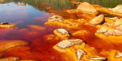 Рио – река, Тинто – красная. Бразилию в свое время так назвали португальские колонизаторы по местному именованию красного дерева. Испанская провинция Андалусия до сих пор находится в Европе. Беда в том, что более трех тысяч лет там добывают золото, серебро, медь, никель, молибден… В средние века добывали еще и ртуть. Результат загрязнения озера, в которое впадают многочисленные стоки, предсказуем и виден на иллюстрации. Как ни странно, там живут бактерии-экстремалы, которым не нужен воздух (они анаэробные), но очень нужен азот. Астробиологи полагают, что этот вид бактерий неплохо приживется и на Марсе.