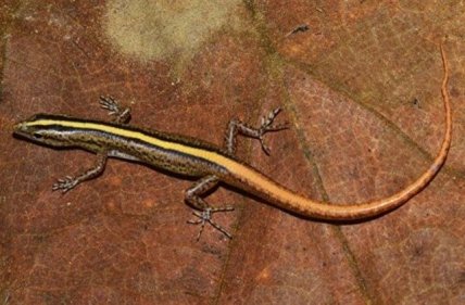 Неподалеку ученые нашли еще одного представителя семейства сцинков — небольшую ящерицу с тремя полосками на голове. Оба открытых вида щеголяют ярко окрашенными кончиками хвостов — с их помощью они общаются друг с другом. Ученым еще предстоит расшифровать значение сигналов, которыми обмениваются рептилии.
