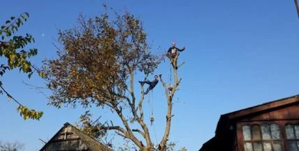 Анатолий Рыбиник, Павел Нагирный и их друг, специалист Ваня, являются профессиональными арбористами из города Монастырище. У них имеется большой опыт в сфере арбористики. Несмотря на сложность в работе, они срезают деревья без использования тяжелой техники.