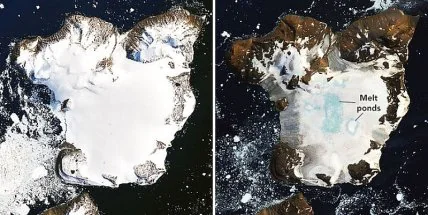 NASA опубликовало снимки, показывающие быстрое таяние ледяной шапки на острове Eagle Island в Антарктиде, а также зафиксировало температурный рекорд.