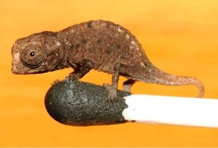 Самым маленьким в мире является листовой хамелеон, достигающий в длину около 1,6 см и легко умещающийся на спичечной головке. Это одно из самых маленьких известных позвоночных.