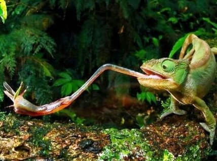 Язык хамелеона выстреливает с необычайной скоростью, достигая добычу за 0,07 секунды.