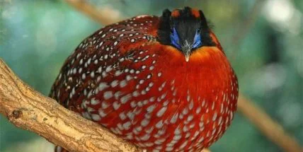 Глазчатый трагопан – представитель фазанов, имеющий привлекательное оперение.