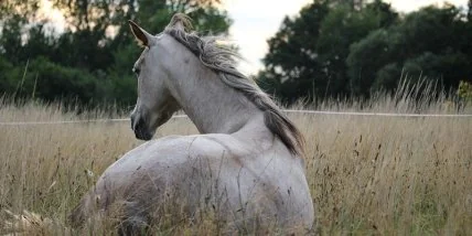 Но у лошадей есть два белых пятна: первое – непосредственно перед ними, второе непосредственно позади головы. Хорошо видя детали, лошади полностью слепы на красный цвет, а их зрение – 20/33 (по сравнению с совершенным зрением человека 20/20).