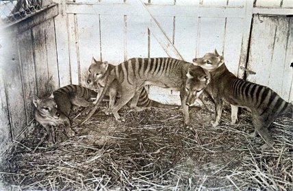 Последний тасманийский волк — сумчатое млекопитающее с собачьей головой — умер в австралийском зоопарке в 1936 году.