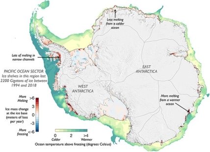 Исследователи использовали данные со спутников за последние 25 лет и воссоздали подробную карту таяния шельфовых ледников Антарктиды. Оказывается, что с 1994 года Антарктида потеряла около 4 тыс. гигатонн — такое количество талой воды может заполнить Большой каньон.